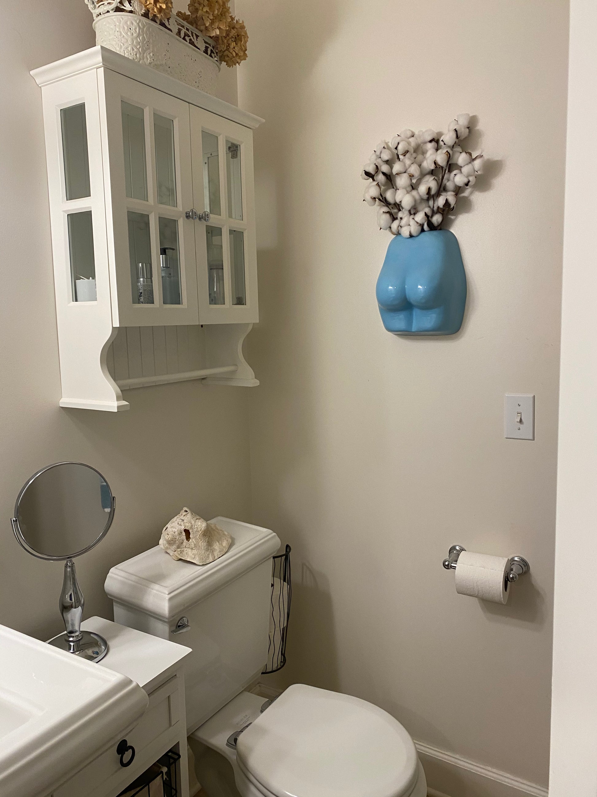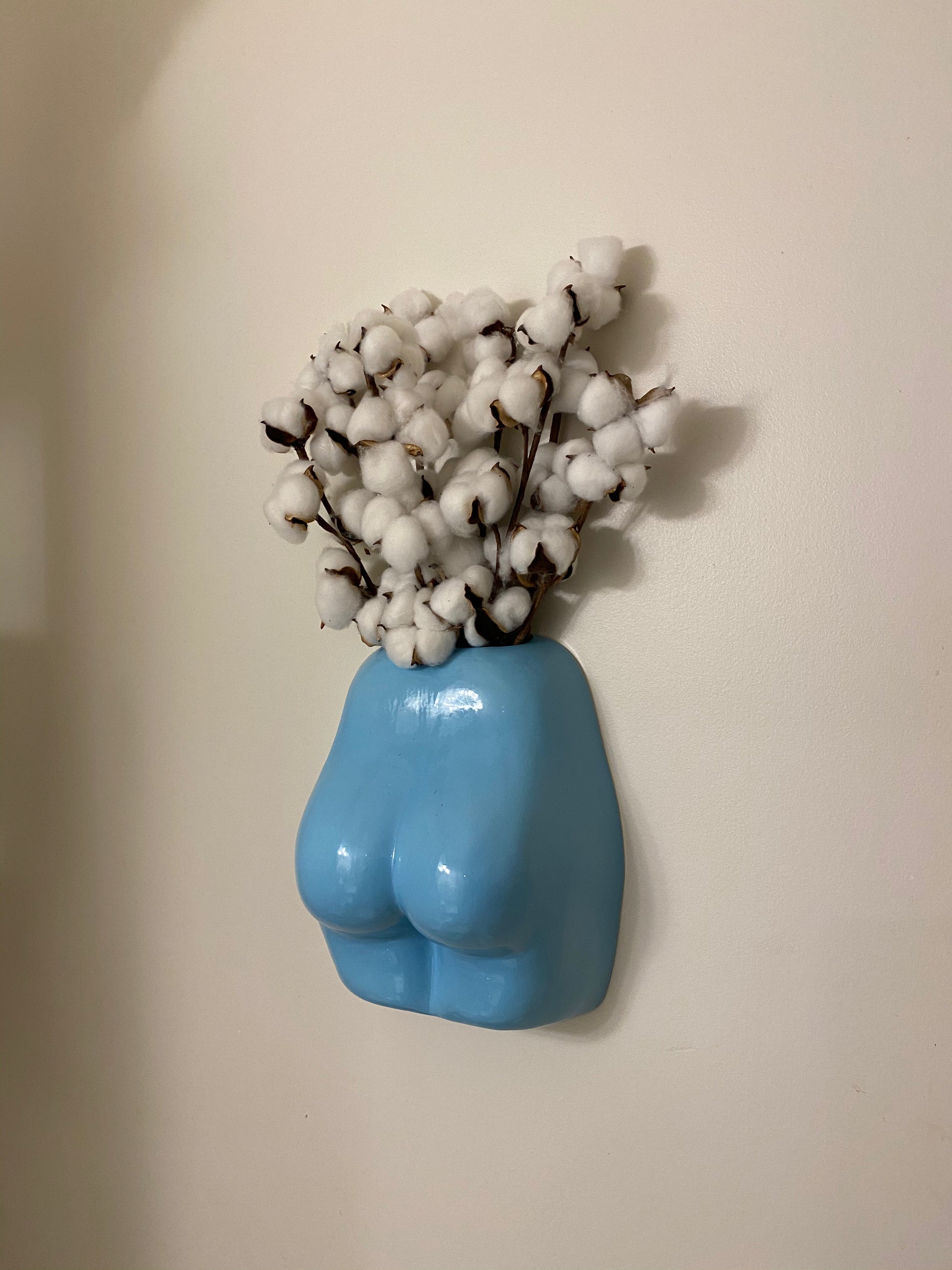 Save some space and hang your flowers on the wall in a butt vase. Ceramic butt shaped wall hanging vase.